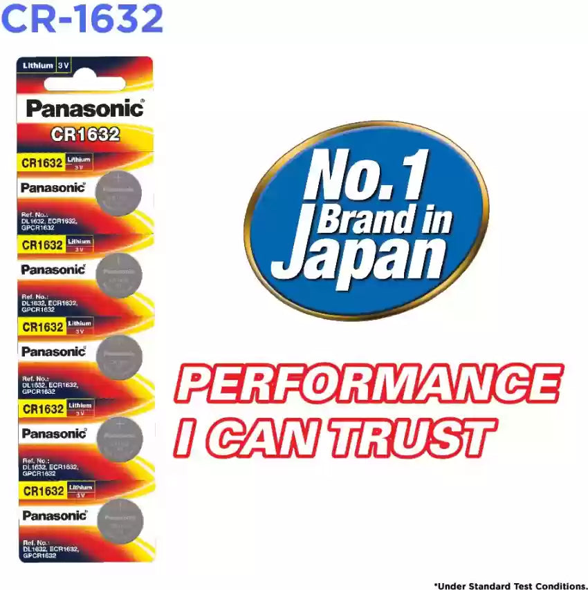 5-Pack of batteries Panasonic CR 1632 3-Volt Coin-Style Lithium Cell Batteries on a Tear Strip